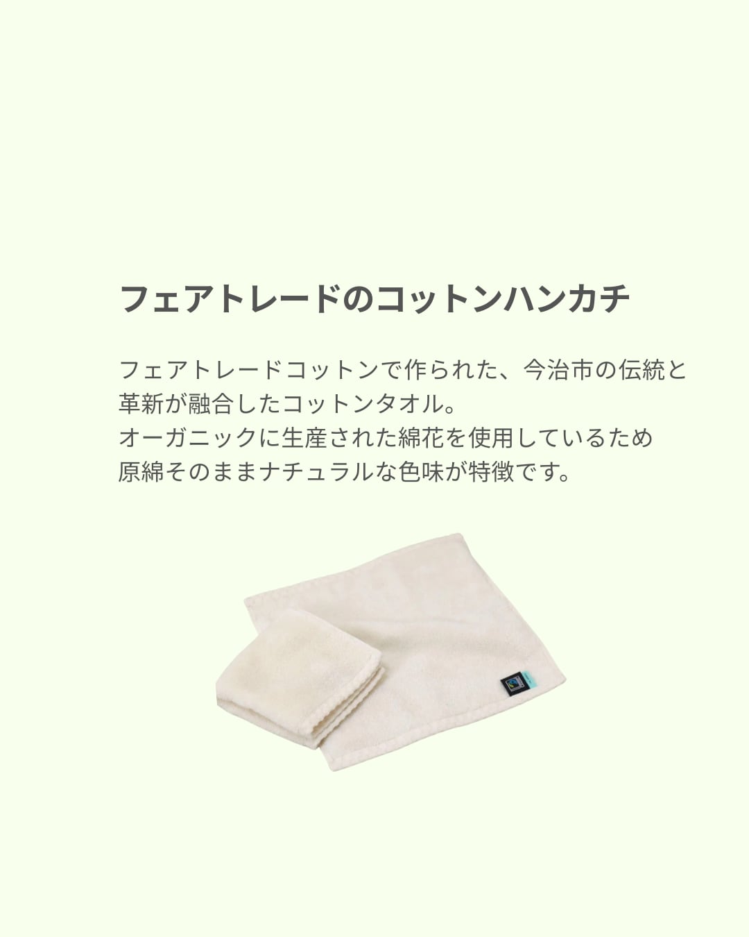 フェアトレードコットンで作られた、今治市の伝統と革新が融合したコットンタオル。