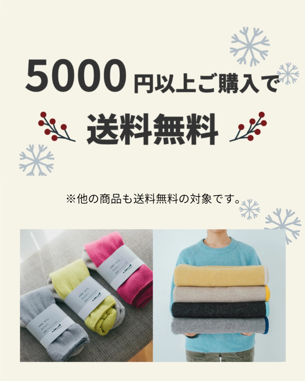 ¥5,000以上のご注文で国内送料が無料になります。